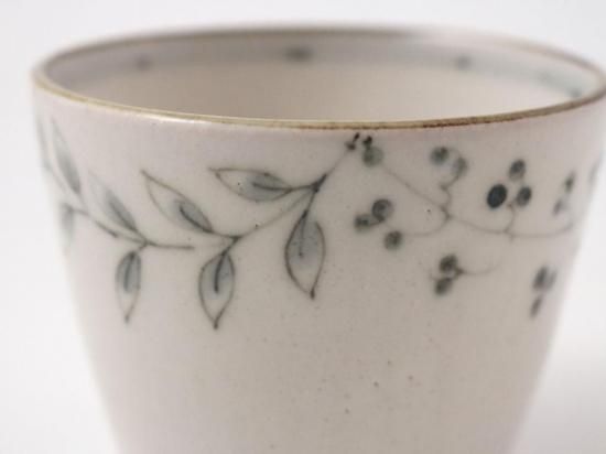赤土に白い泥をかけてから、薄墨の様な呉須で絵付けがされており、